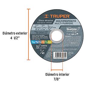 DISCO ABRASIVO DE 115MM 41/2 MULTIPROPOSITO 115mmx1mmx22,2mm,41/2x1/25x7/8