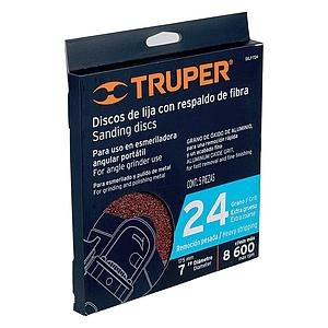 DISCO DE LIJA DE 7' CON RESPALDO DE FIBRA, GRANO 24, TRUPER